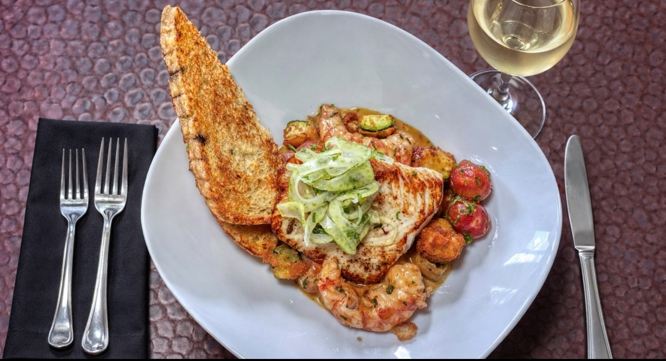 Halibut is the star—do not overcook.