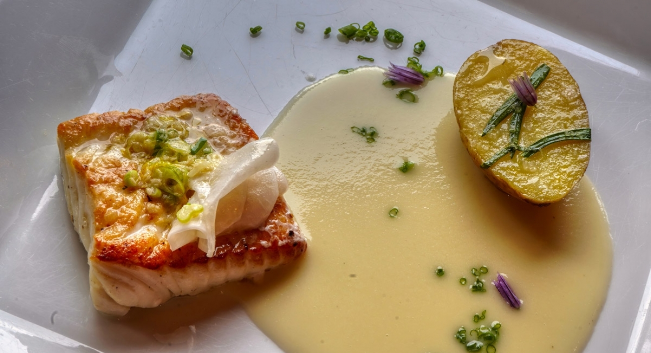 • The potato-leek sauce can be made ahead and reheated gently with a touch of cream before plating.