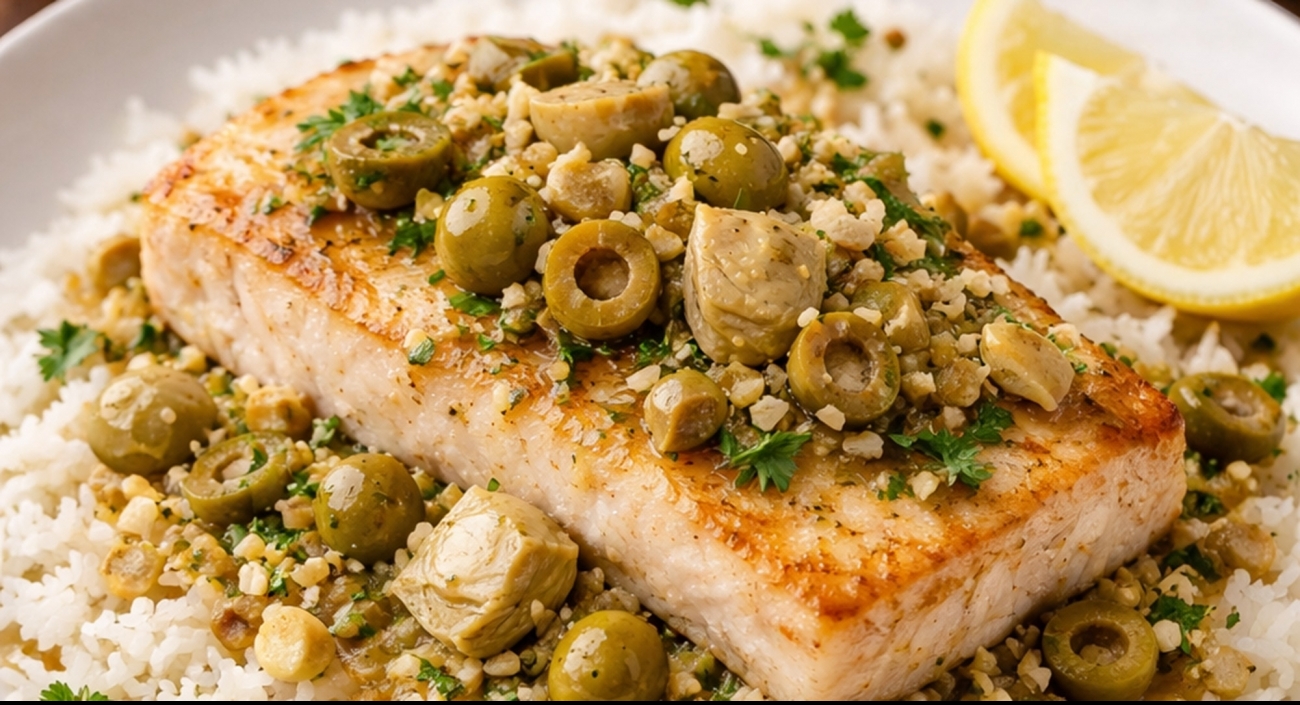 Ladle extra Chardonnay butter sauce over both the fish and the rice